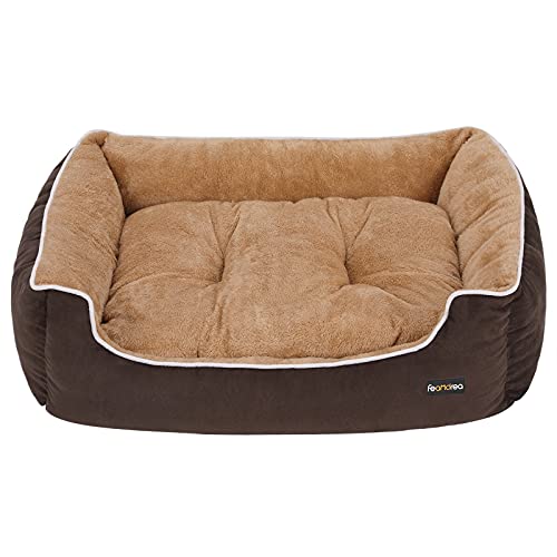 FEANDREA Stor plyschhundbädd med avtagbar kudde, brun, gul (90 x 75 x 25 cm)