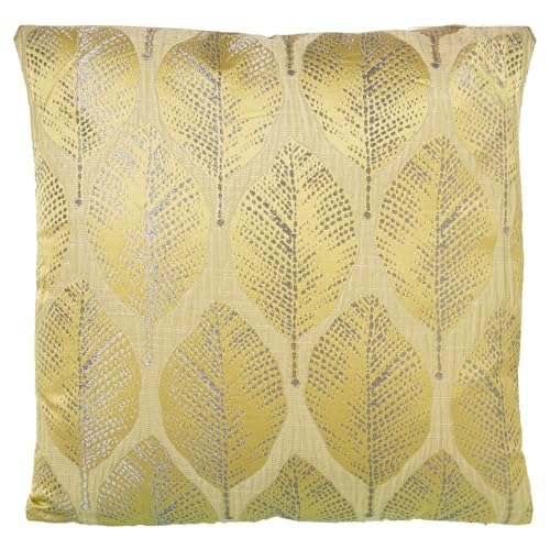 Riva Paoletti Zurich fylld kudde gul-dekorativ blommig jacquarddesign – rörliga kanter – vändbara 100 fodral (18 tum x 18 tum) – designad i Storbritannien, polyester, guld, 45 x 45 cm