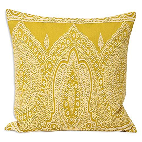 Riva Paoletti fjäder fylld kudde – gul-detaljerad persisk paisley design-knivkanter-dold dragkedja-maskin tvättbar-polycotton fodral-50 x 50 cm (20 x 20 tum)