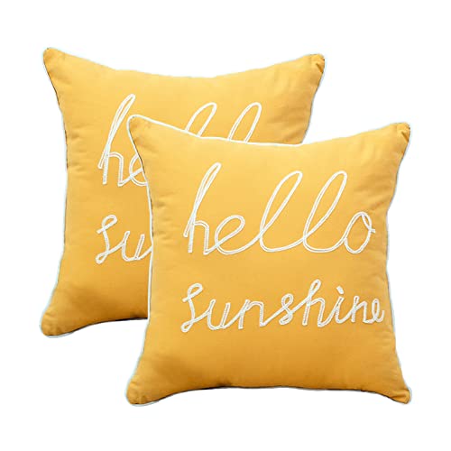 YIcabinet Uppsättning av 2 mjuka fasta dekorativa fyrkantiga kuddöverdrag gul Hello Sunshine kudde för soffa sovrum bil 45 x 45 cm