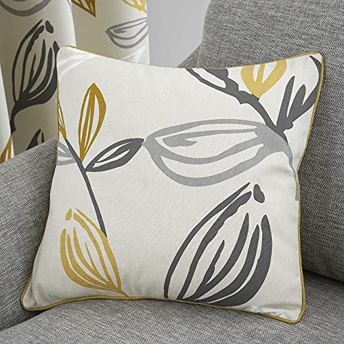 Fusion – grå & ockra bladkudde (43 x 43 cm) – fyllning ingår – kudde med ledad kant – ockra gul kudde med skydd ingår) – blommig kudde