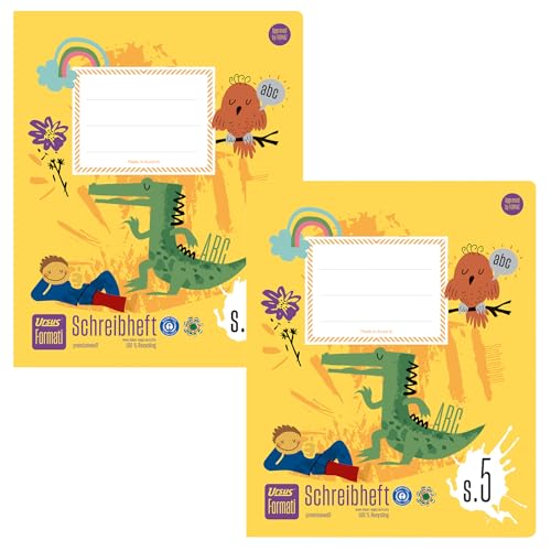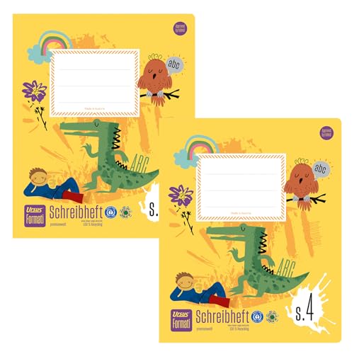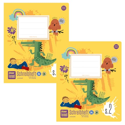 Ursus Forati skrivbok S.2 kvarts 20 ark linjerat, 2 stycken, byggande linjatur för skrivnybörjare: inuti, tillverkad av 100% återvunnet papper