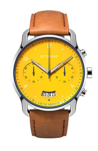 DeTomaso SORPASSO Giallo silver gult herrarmbandsur analog kvarts läderarmband brunt, GUL, Rem