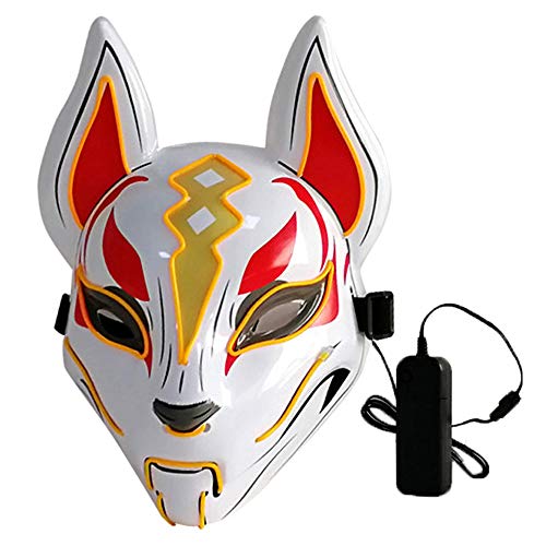 Lixada 10 färger räv full mask neonljus halloween fest LED lampskärm mörk glödande cosplay mask party kostym mask (gul)