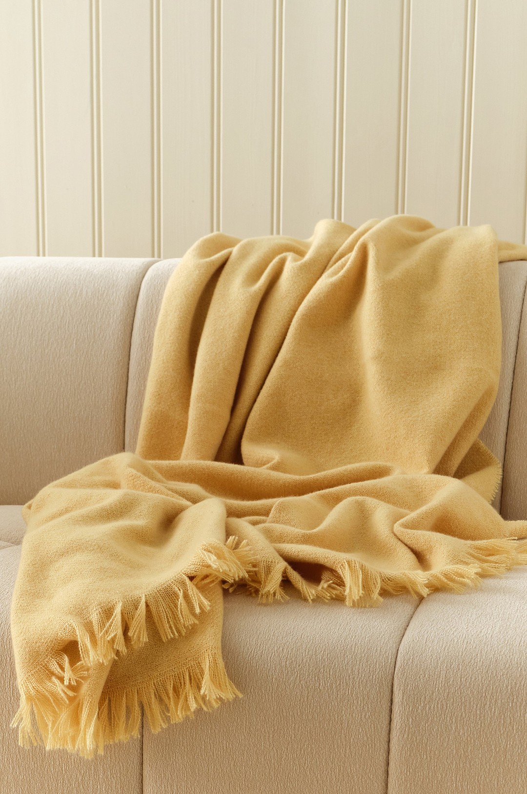 OT ECO Ullfilt Gul Guld Pläd, 140 x 220 cm, 100% Jungfrulig ull från Nya Zeeland, 140x200 (exkl fransar), Mjukt Varmt överkast, För Fåtölj/Soffa/Säng, Enkel/Dubbel, Alla säsonger