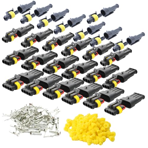 KINYOOO 15 kit bilkabelkontakt, vattentät elektrisk terminal, plugg för auto motorcykel scooter lastbil marina pluggsockelkit, 2 stift x 5 kit, 3 stift x 5 kit, 4 stift x 5 kit.