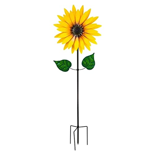 WINBST Solros väderkvarn, metall trädgård dubbla lager vindspel solros plugg, gula vindspel för gårdsdekor fågel avskräckande dekorativa trädgårdsinsatser