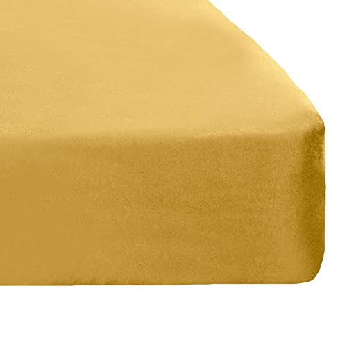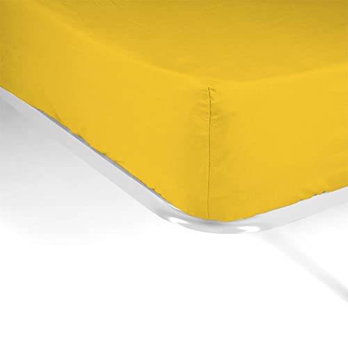 Sokios 200 -trådar bomullsark gul senap 50. Mjuk och andas. Det gör inte bollar. Gjord i Spanien. Bed90 (90x200)