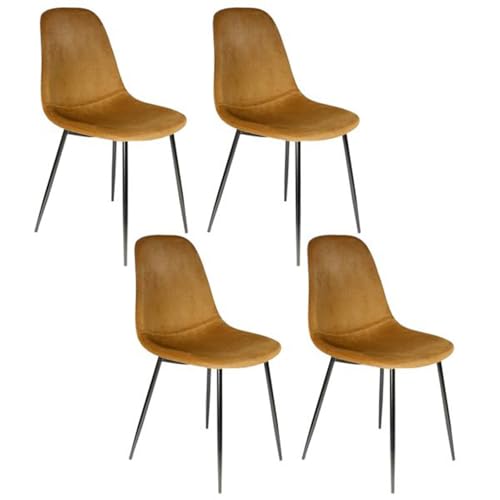 THE HOME DECO FACTORY HD67051 set med 4 sammet Cotele Giulia gul senap möbler sits stol stol stol vardagsrum matsal entré möbel, metall, 54 x 85 x 44 cm