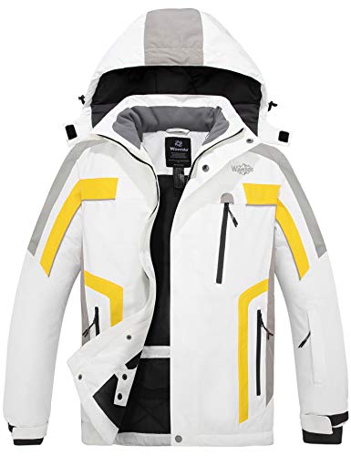 Wantdo Vattentät skidjacka för män utomhus vindtät sportrock varm vinter snörockar berg snowboardjackor, Vitt och gult, XL
