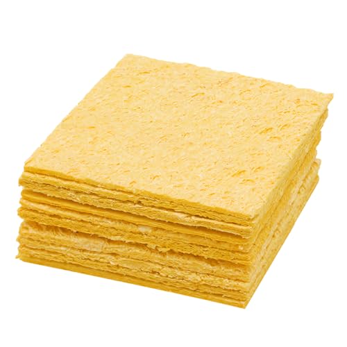 Lödsvamp, 20 st järnrengöringskuddar svetsning lödkolv svamp lödspets rengöring svamp lödkolvrengörare, för lödning, bil, hushåll, gul, 51 x 36 x 3 mm