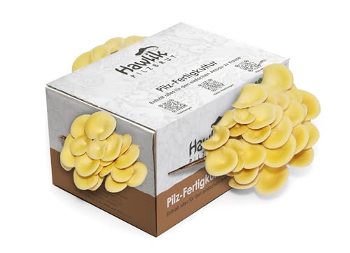 Hawlik Pilzbrut – gul ostron svamp kultur liten ca. 3 kg I Grow Golden Ostron Svamp I no Previous Knowledge Required I Easy to Grow hemma I Present till trädgårdsentusiaster