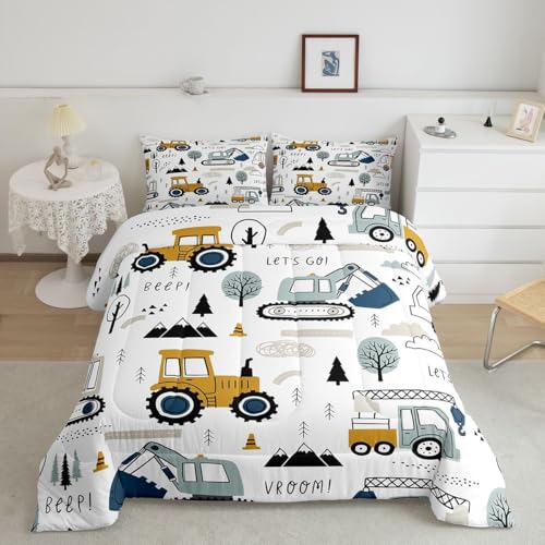 Tecknad bil barn täcke set konstruktion sängkläder set dekor utrustning lastbilar täcke tecknad bil grävmaskin traktor vitt gult påslakanset sovrum täcke set 2 st tvilling