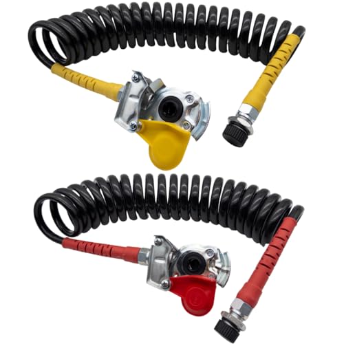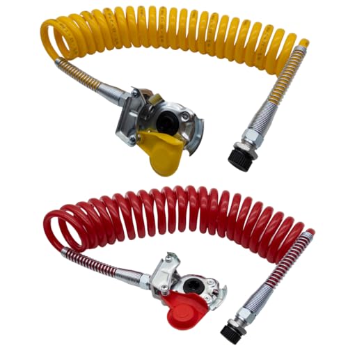 SERTPLAS M22 Luftspiral, Tryckluftssnända, Spiralslang Med Böjskydd Gul Och Röd Inkl. Kopplingshuvud Röd Och Gul Med Ventil, För Dragmaskena, Traktor, Lastbil