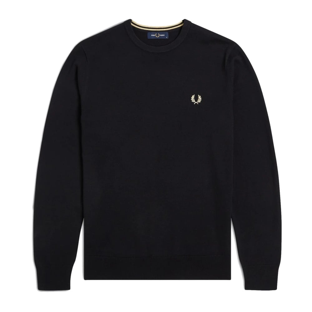 Fred Perry, Stickade Tröjor , Herr, M, Bomull, Klassisk Crew Neck Tröja Svart/Gul