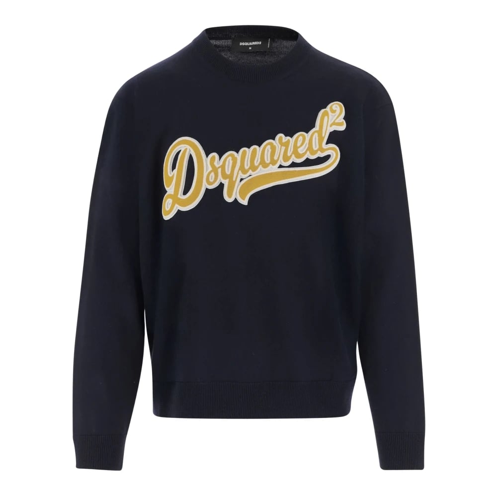 Dsquared2, Stickade Tröjor , Herr, L, Ull Logo Tröja Marinblå Gul