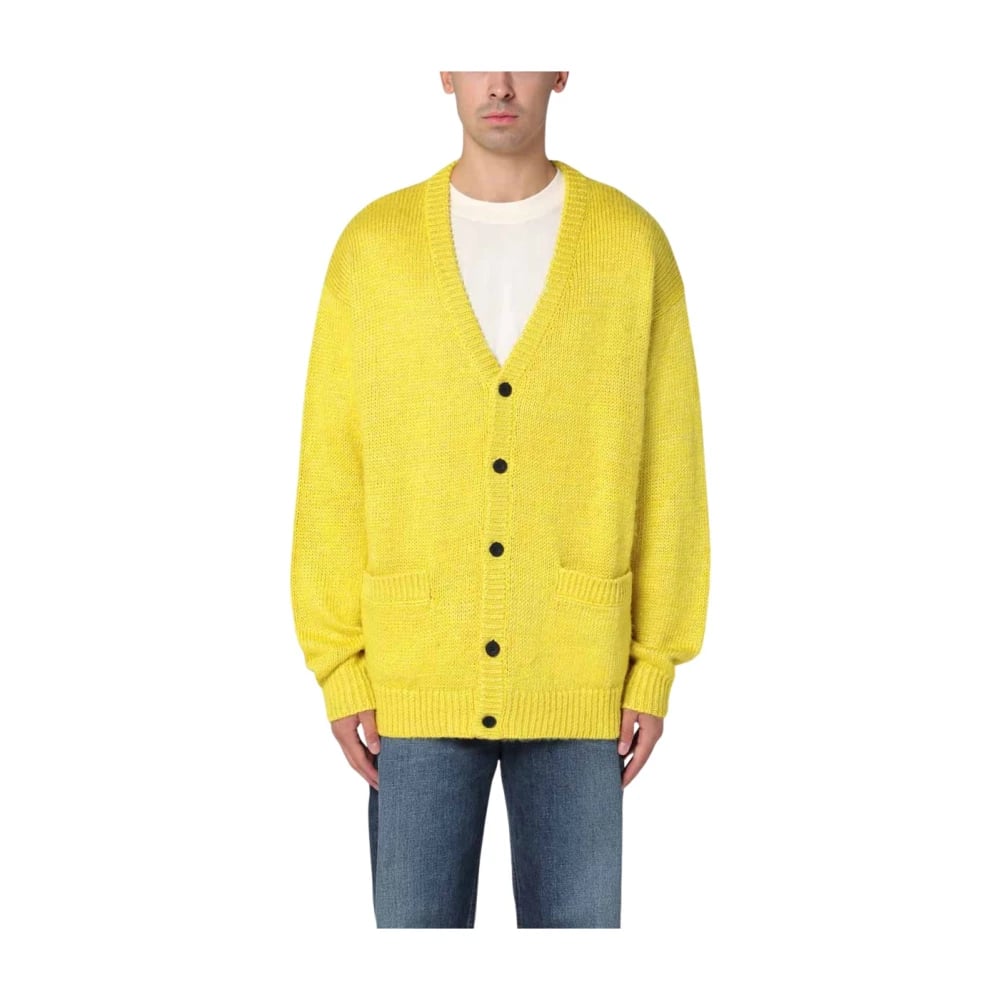 Paolo Pecora, Stickade Tröjor , Herr, S, Ull Cardigan Tröja i Gul