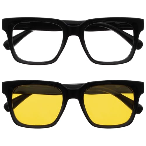 OPULIZE ERA solglasögon, gul tonad lins, 2-pack, antireflekterande och anti-bländning, polariserade linser med UV400-skydd, överdimensionerad rektangulär ram, fjädergångjärn, klar, unisex, Klar, gula