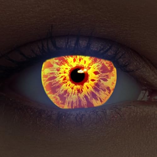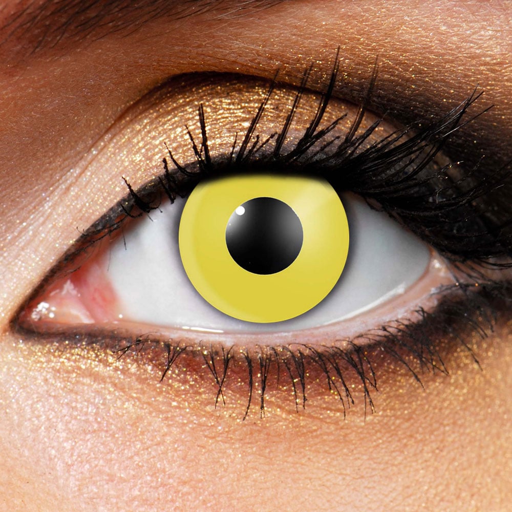 DESIGNLENSES, ljusgul Halloween The Purge kostym kontaktlinser, 1 par (2 stycken), mjuka UV neonfärgade linser "Sparkle Yellow" (gul)
