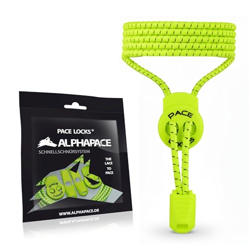 ALPHAPACE Pace Locks med knapplås, elastiska skosnören utan knytning med snabblås, skoband utan snören, sport, ungdom och äldre, 120 cm, Neongul W/B-ränder, Einheitsgröße