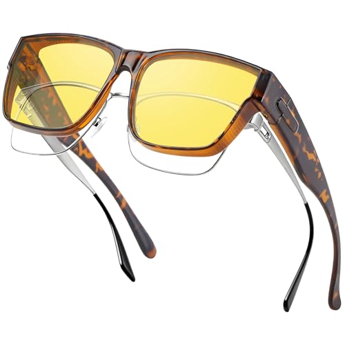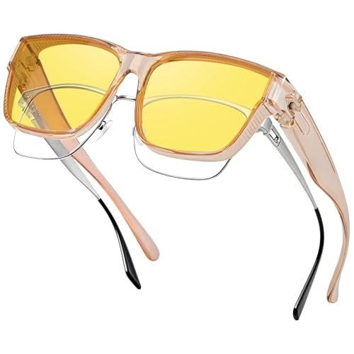 Nlieanuc Polariserade Fit Over Night Driving Glasögon - Anti-Glare Wrap-Around Nattseende Skydd för Män Kvinnor Gula Över-glasögon Solglasögon (Klarbrun Gul)