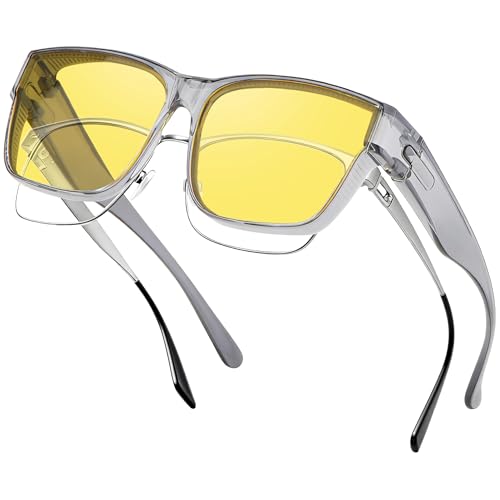 Nlieanuc Polariserade Fit Over Night Driving Glasögon - Anti-Glare Wrap-Around Nattseende Skydd för Män Kvinnor Gula Över-glasögon Solglasögon (Klargrå Gul)