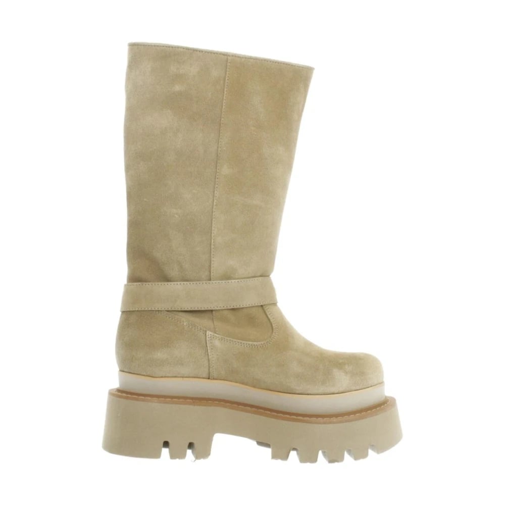 Yellow, Skor , Dam, 39 EU, Mocka, Höga stövlar med spännen