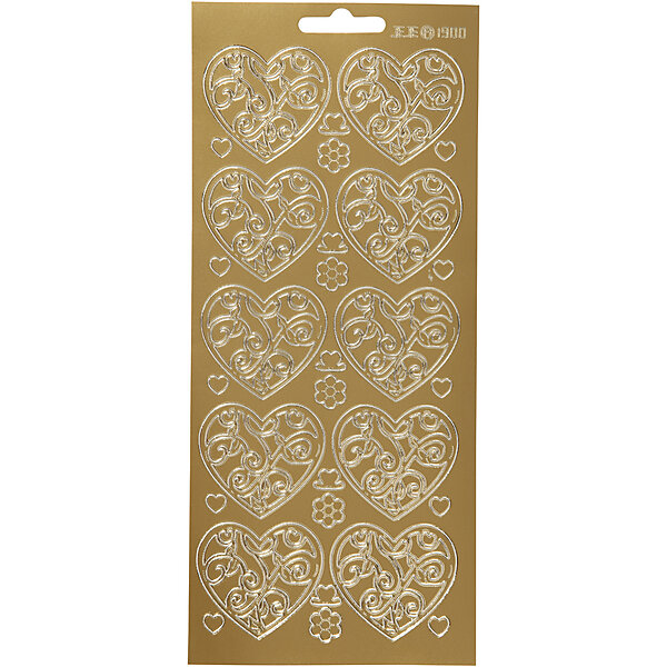 Creativ Company Stickers Hjärtan 1 Stickers, guld, hjärtan, 10x23 cm, ark 170017