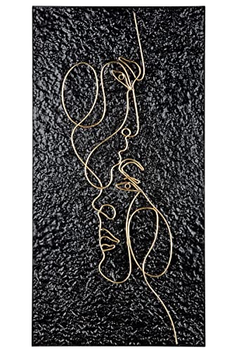 Casablanca Deco relief väggdekoration – stor bild XL med ansiktsdrag – handgjord av metall – färg: guld på svart bakgrund – 41 x 81 cm