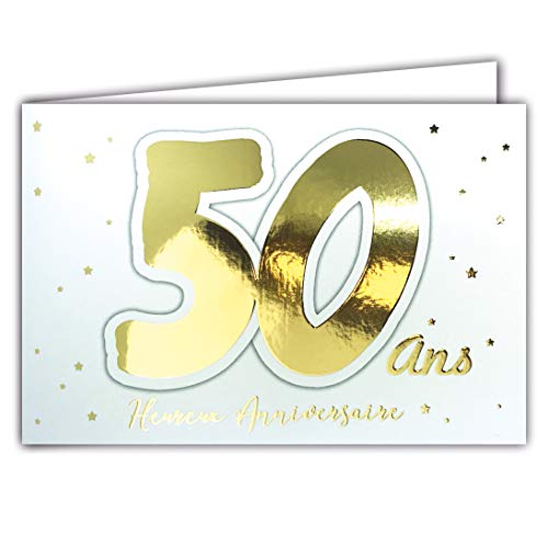Afie 69-2205 kort 50 år glad ANNIVERSAR stjärnor som lyser i guld på vit bakgrund; Levereras med kuvert stängt kortformat 17 x 11,5 cm