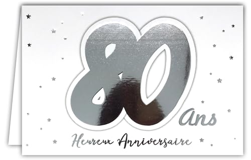 Afie 69-2208 kort 80 år glad ANNIVERSAR stjärnor som lyser i guld på vit bakgrund; Levereras med kuvert stängt kortformat 17 x 11,5 cm