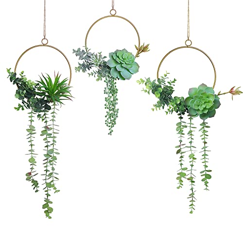 C&Z Konstgjorda suckulenter krans uppsättning av 3 hängande guld geometrisk girlang grönska krans väggdekor för bröllopsfest barnkammare bakgrund