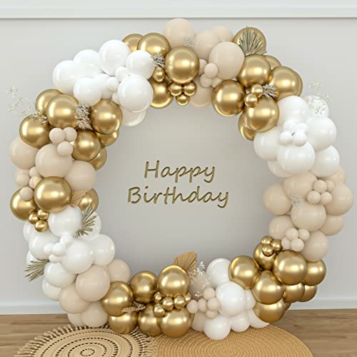 Ballongbågskit Med Vit Sand Och Guld – 152 St Hudfärgade Ballonger i Vitt Och Guld, Båge, Girlangkit,Pastellballongbåge För Födelsedagsfest, Boho, Bröllop,Förlovning, Babyshower-Dekoration Bakgrund