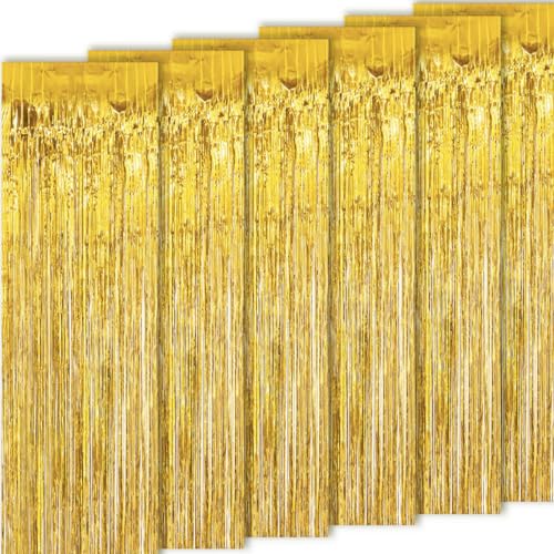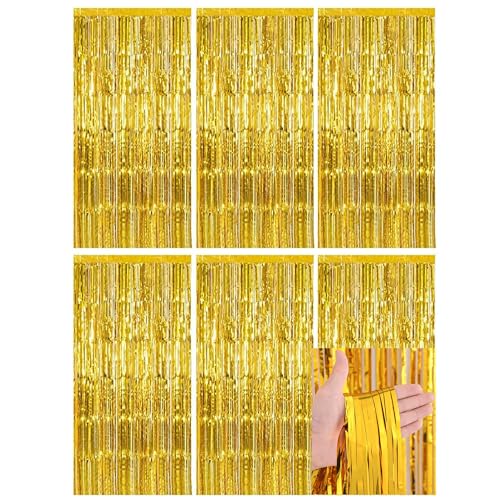 6 Skimrande Gardiner Guld Festdekoration och Födelsedag, Fransar Folie Gardiner Fest Flisor Bakgrund, Metalliska Flisor Gardiner, Folie Fransar