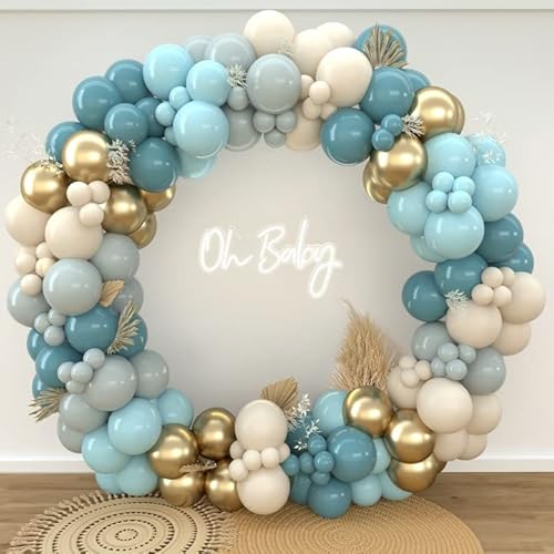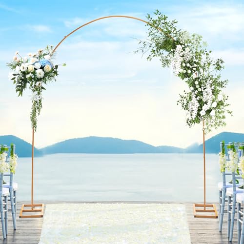 OUKANING Ballongbåge bakgrund 2,3 x 2,3 m bröllopsbåge, med bas och fjärilsskruvar, återanvändbara, bakgrundsstativ bröllop, för alla evenemangsdekorationer (guld)