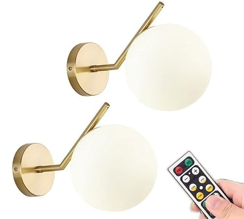 KEFA batteridriven vägglampa i guld i mässing, icke trådbunden glob glaslampett, trådlös modern minimalistisk sovrum sänglampa för restaurang vardagsrum TV bakgrund badrum hall fåfänga