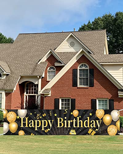 Födelsedagsfest dekorationer banderoller, födelsedagsdekoration för pojkar och flickor, lång storlek födelsedag män kvinna banderoll svart och guld födelsedag dekoration bakgrund, 180 x 40 cm