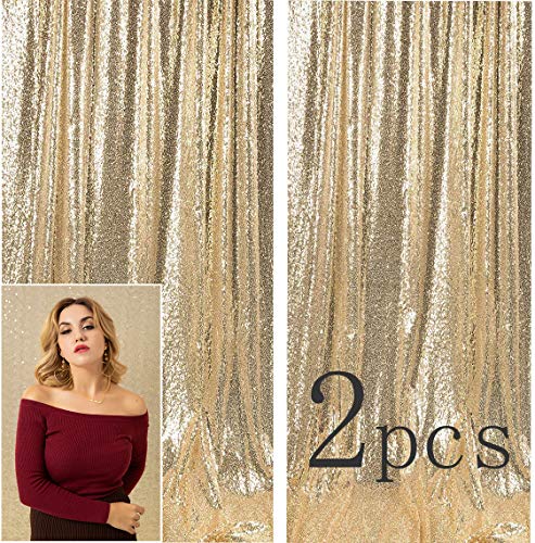Kate Sequin Backsrops champagne guld (2 stycken) bröllop paljett dekoration fotobås 1,25 x 2,2 m Broadway vintage dekoration glittrande gardiner festdekoration fotoraphy bakgrund