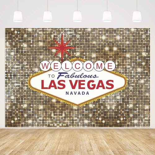 MEHOFOND 2,4 x 1,8 m Välkommen till Las Vegas festbakgrund fantastisk kasino poker vintage guld rund paljett fotografi bakgrund fotosession dekor banderoll porträtt fotobås rekvisita tillbehör