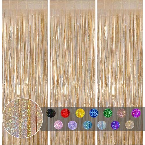 3 st champagne guld metalliska glitter gardiner folie dörrgardin, 1 x 2 m laserfolie fransgardin, skimmer gardiner fest streamers bakgrund för födelsedag bröllop förlovning ungkarl julfest dekor