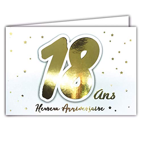 Afie 69-2201 18 år lycklig ANNIVERSAR stjärnor som lyser i guld på vit bakgrund, levereras med kuvert ; stängd kortstorlek 17 x 11,5 cm