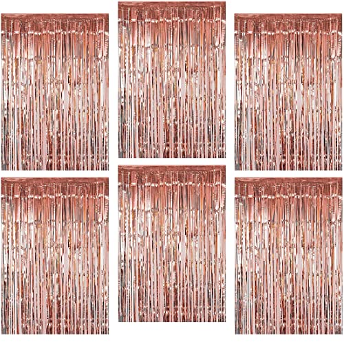 Metallisk gardin med fransar, födelsedagsgardin, rosa guld dag, glänsande aluminium shimmer gardiner, fönsterdekoration bakgrund vägg för födelsedagsfest (1 m*2 m)