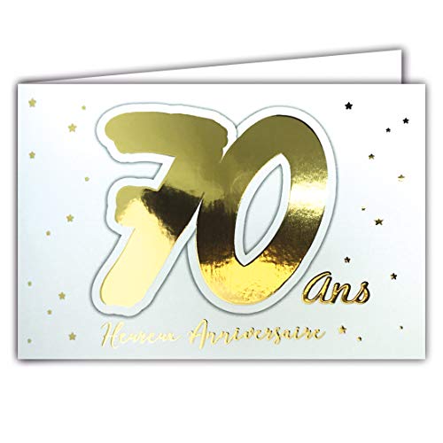 Afie 69-2207 70 år lyckligt ANNIVERSAR stjärnor som lyser i guld på vit bakgrund, levereras med kuvert - stängd kortstorlek 17 x 11,5 cm