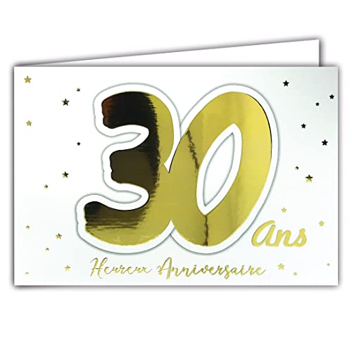 Afie 69-2203 30 år gammal lycklig stjärnbild som lyser i guld på vit bakgrund, levereras med kuvert; stängd kortstorlek 17 x 11,5 cm