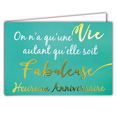 Afie 69-5108 Glad ANNIVERSARE kort Man har bara ett liv lika mycket som det är fantastiskt guld ord lysande blå turkos grön bakgrund; levereras med kuvert stängt kortformat 17 x 11,5 cm