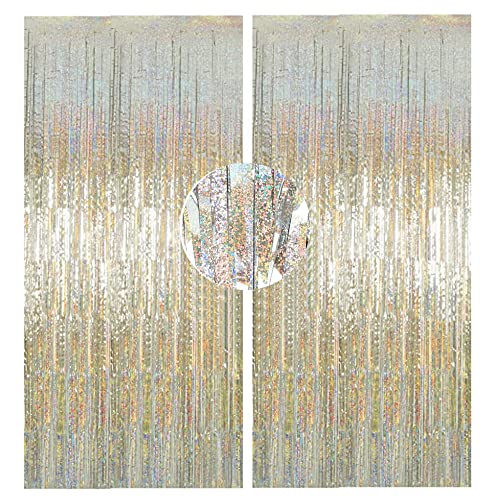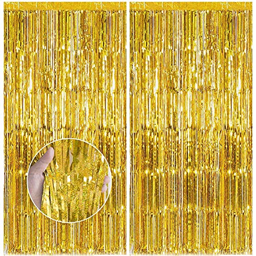 2 Skimrande Gardiner Guld Festdekoration och Födelsedag, Fransar Folie Gardiner Fest Flisor Bakgrund, Metalliska Flisor Gardiner, Folie Fransar