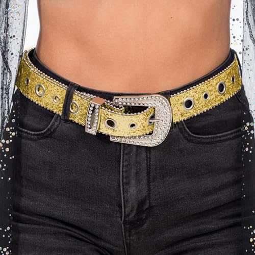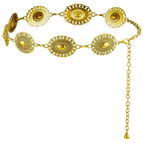 Andibro Western kedjebälte för kvinnor, landskonsertkläder bälten cowgirl midjelänkar bälte justerbar metall concho-bälte, Guld, One Size