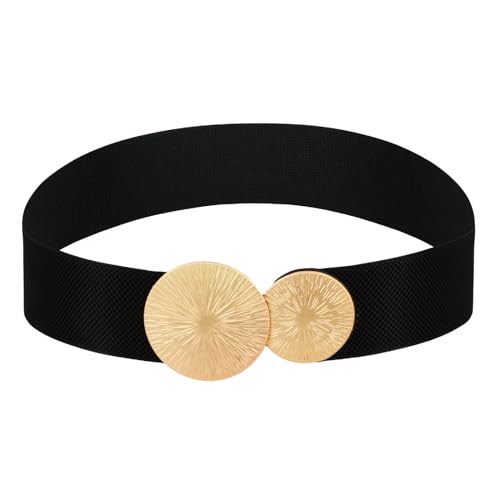 TIESOME Dam elastiskt brett bälte, guld dubbel O-ringar midjebälte vintage stretch midjeband smala bälte för klänningar, a, one size