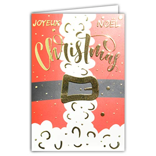 Karta God jul Merry Christmas jultomte liten pappa jul röd kostym bälte guld förgyllt