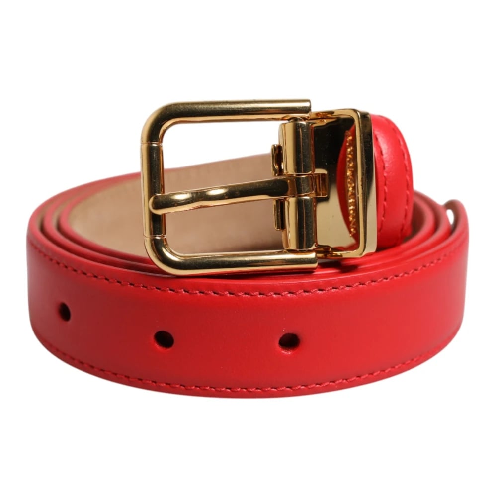 Dolce & Gabbana, Accessoarer , Dam, ONE Size, Läder, Rött läder guld metallspänne bälte
